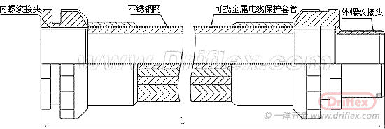隔爆型防爆可挠金属电线保护套管,采用我公司生产可挠金属电线保护套管和防爆接头,套管外径编织不锈钢金属网,产品严格执行JB9600-1999标准,各项指标完全符合该标准有关规定。产品质量,使用方便,寿命长,安全可靠,是新一代防爆可挠金属电线保护套管。对钢管配线弯曲难度大,配管困难的地方安装使用方便。